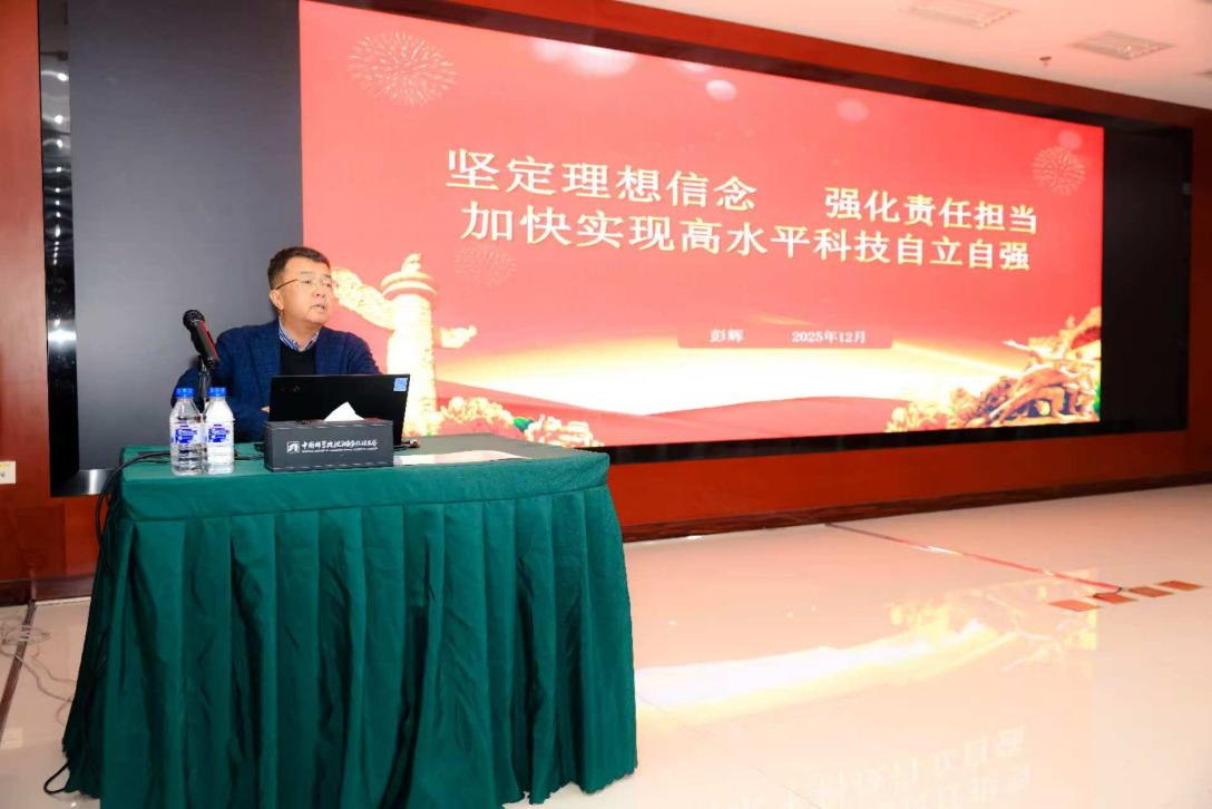 中国科学院青岛生物能源与过程研究所原党委书记彭辉作了题为《坚定理想信念 强化责任担当 加快实现高水平科技自立自强》的报告。报告系统回顾了党的百年伟业与中国科学院的发展历程,阐述了新时期实现科技自立自强的意义和路径,并结合习近平总书记对青年干部提出的“六个做到”的要求,分享了理解和认识。